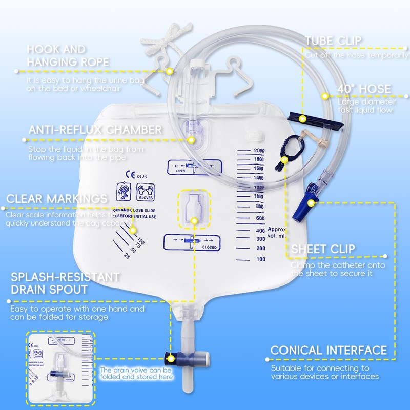 - [Upgraded high-end drainage bag]: 0.4-inch catheter accelerates liquid flow, thickened and enlarged urine bag to ensure safety.