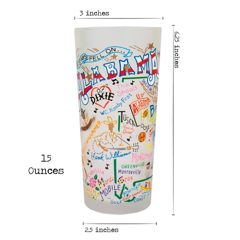 catstudio Alabama Drinking Glass | Geography Inspired Artwork Printed on a Frosted Cup