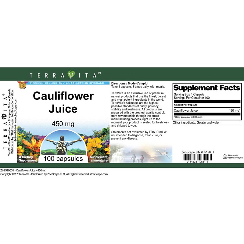 • Cauliflower Juice - 450 mg (100 capsules, ZIN: 519631)