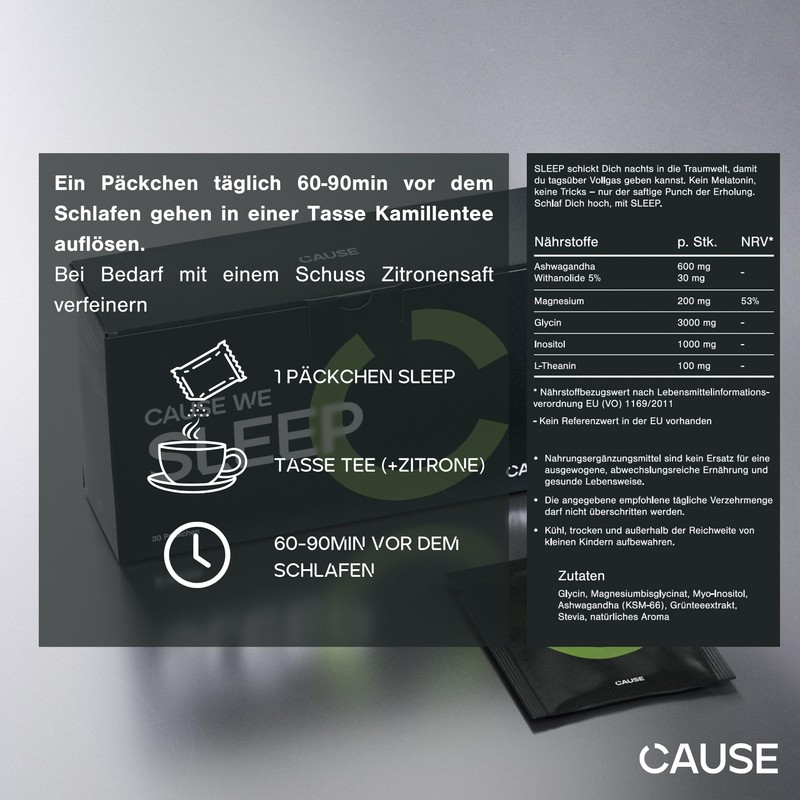 CAUSE We Sleep Magnesium, Ashwagandha, Theanine etc. for Natural Stress Management and Relaxation in the Evening - Pack of 30 - No Artificial Additives (30 Pieces, Lemon)