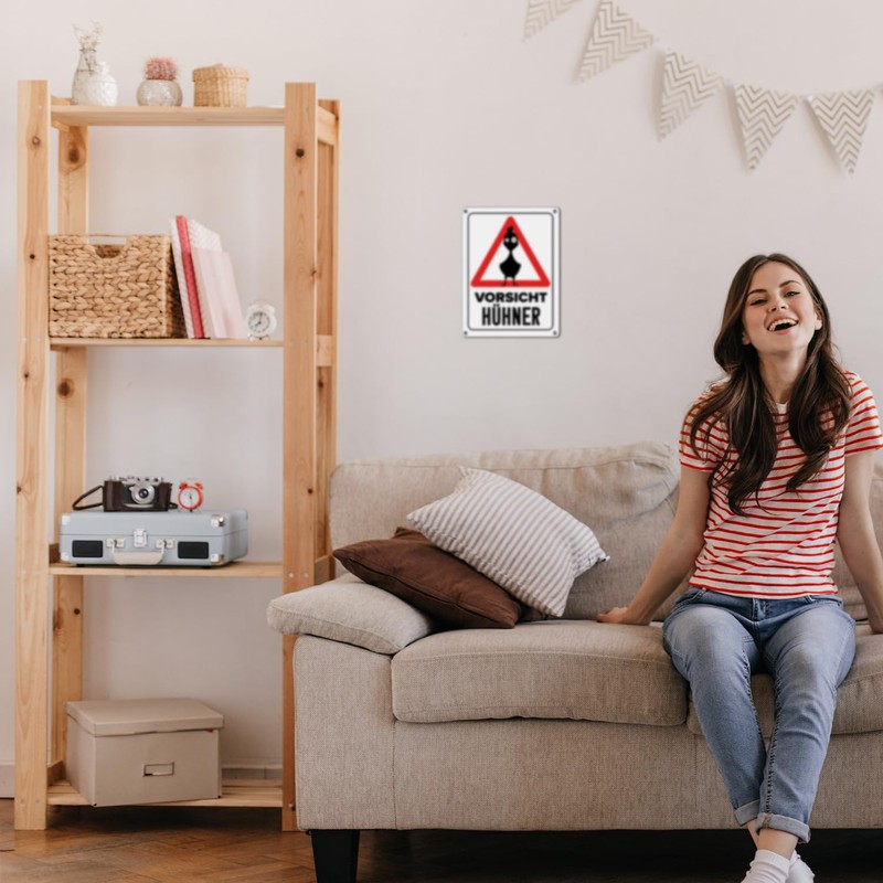 - Box contents: 1x Vorsicht chickens metal sign in 15 x 20 cm with chicken silhouette