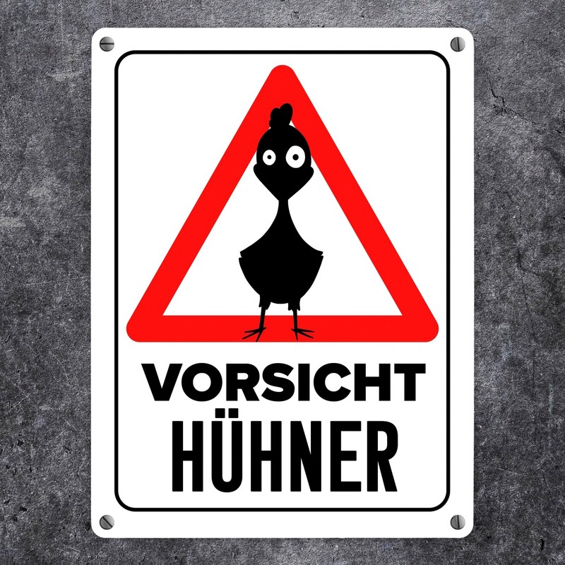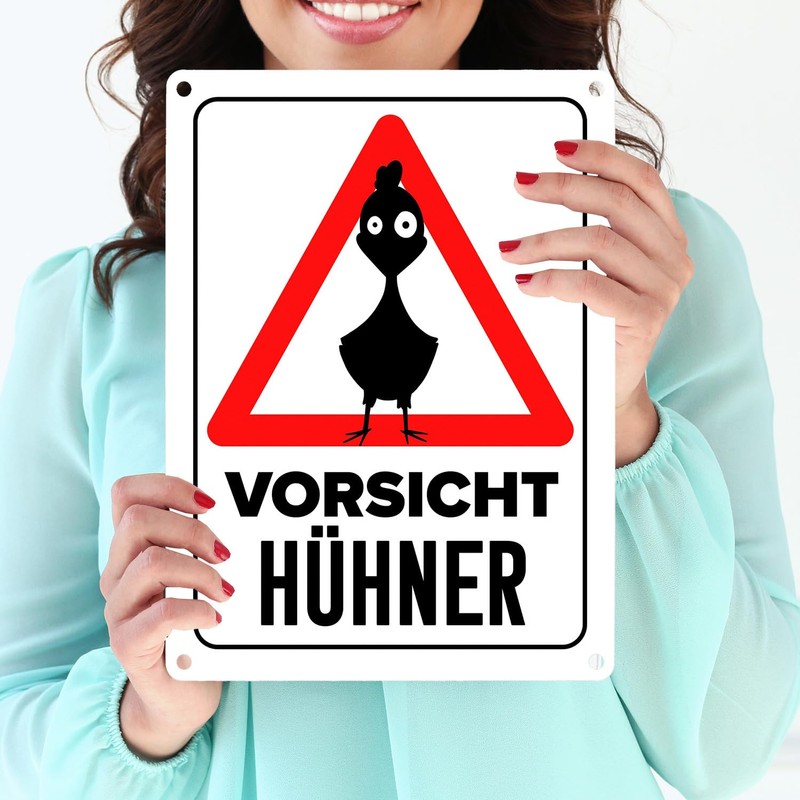 - Chickens are one of the most popular farm animals in Germany. No wonder, the fun chickens are easy to care for and easy to hold. With this funny metal sign, you can warn passers-by of your chickens. A fun decoration for the chicken coop or fence.