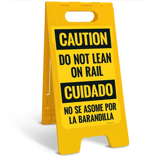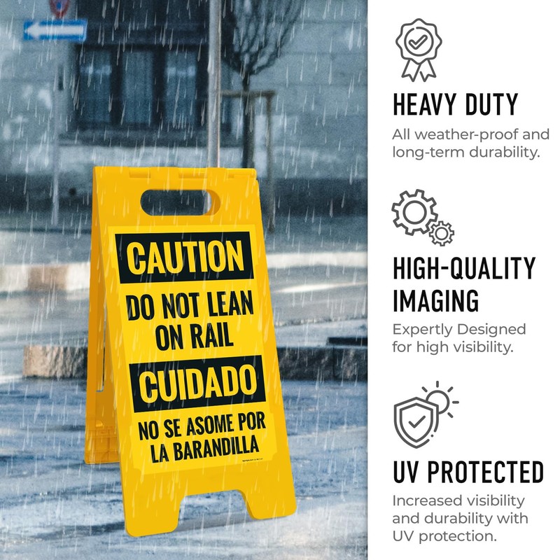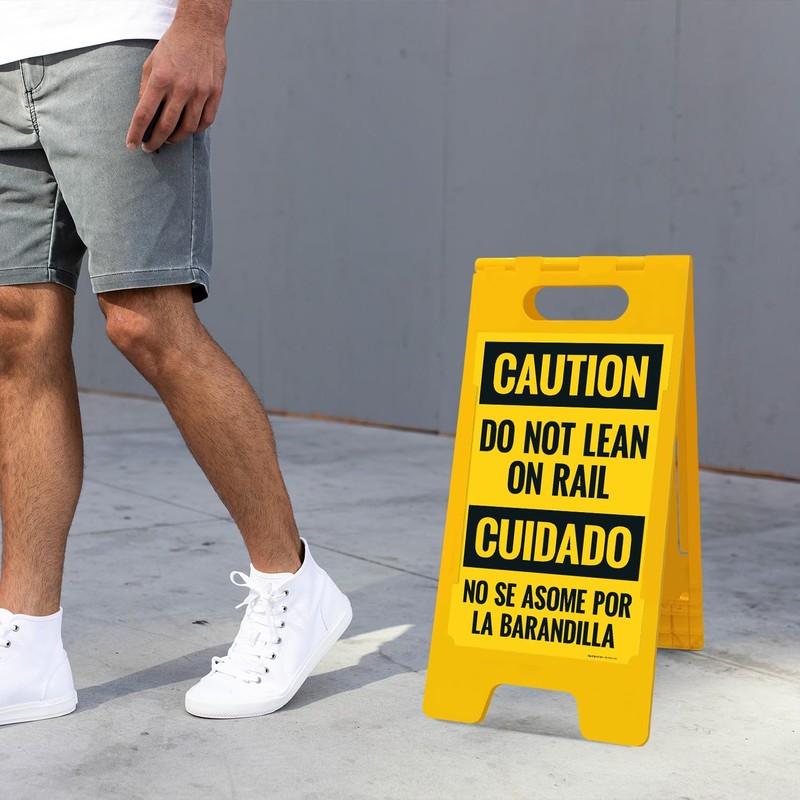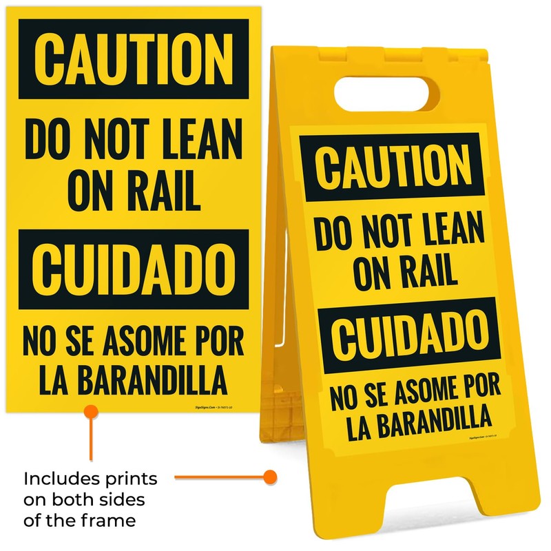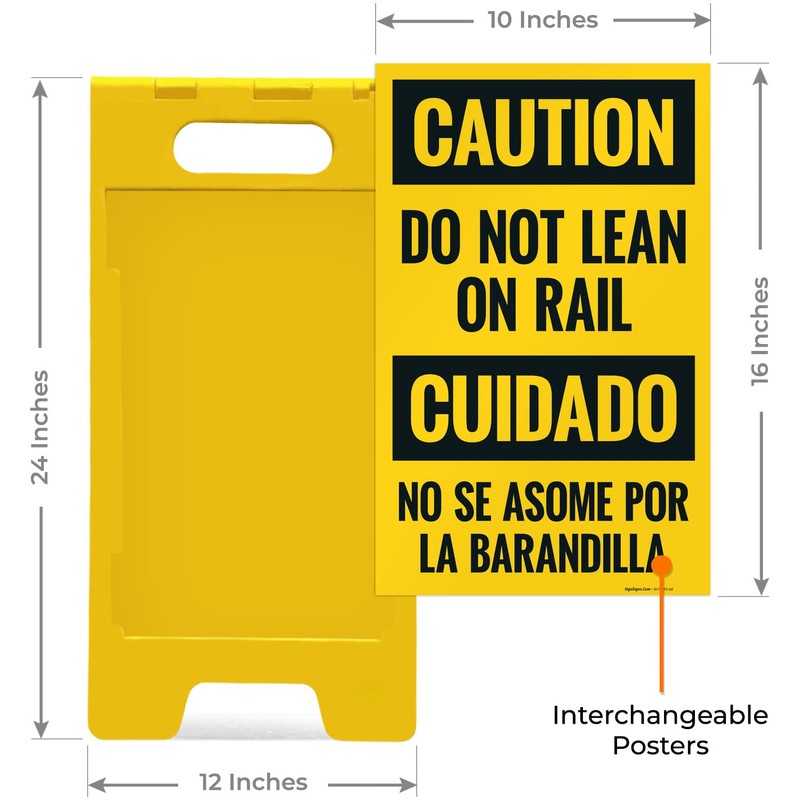 Caution Do Not Lean On Rail Bilingual Sidewalk Sign Kit, 10x16 Inches, with A Frame Stand, Made in USA