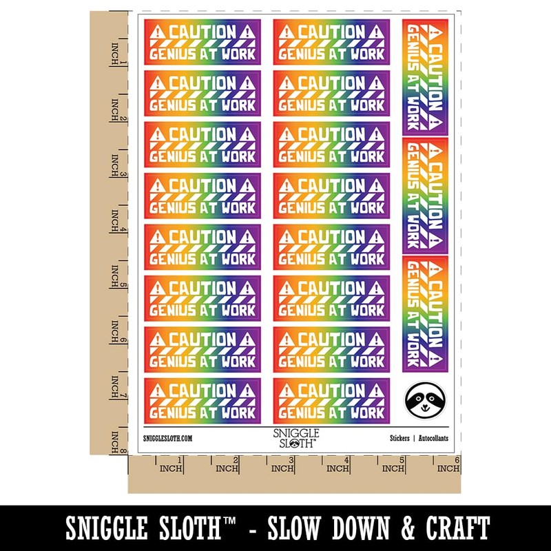 Caution Genius at Work Teacher Student School Sticker Pack - Gloss Finish - Large 2.00" Size - Rainbow