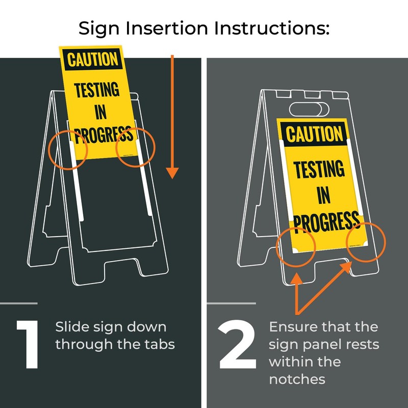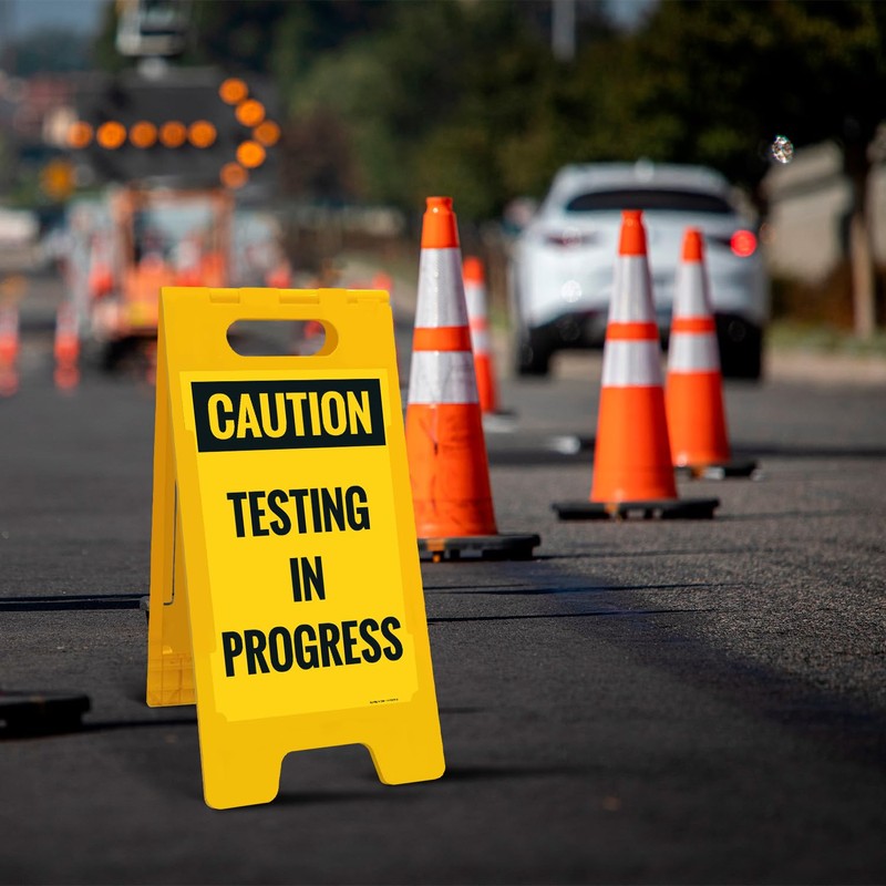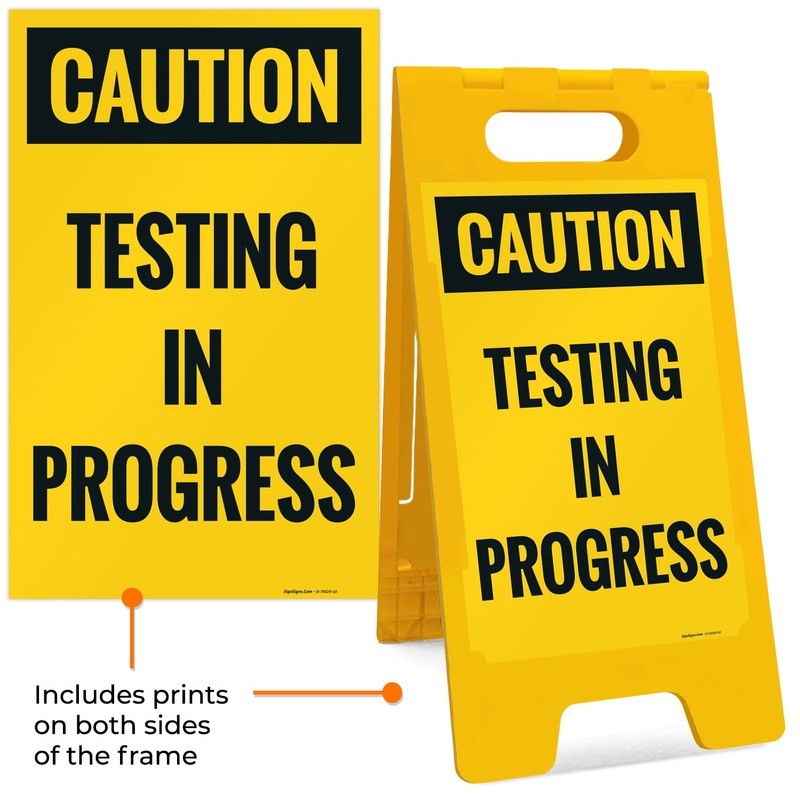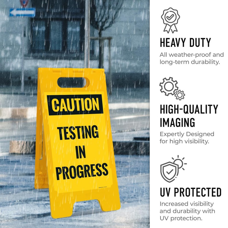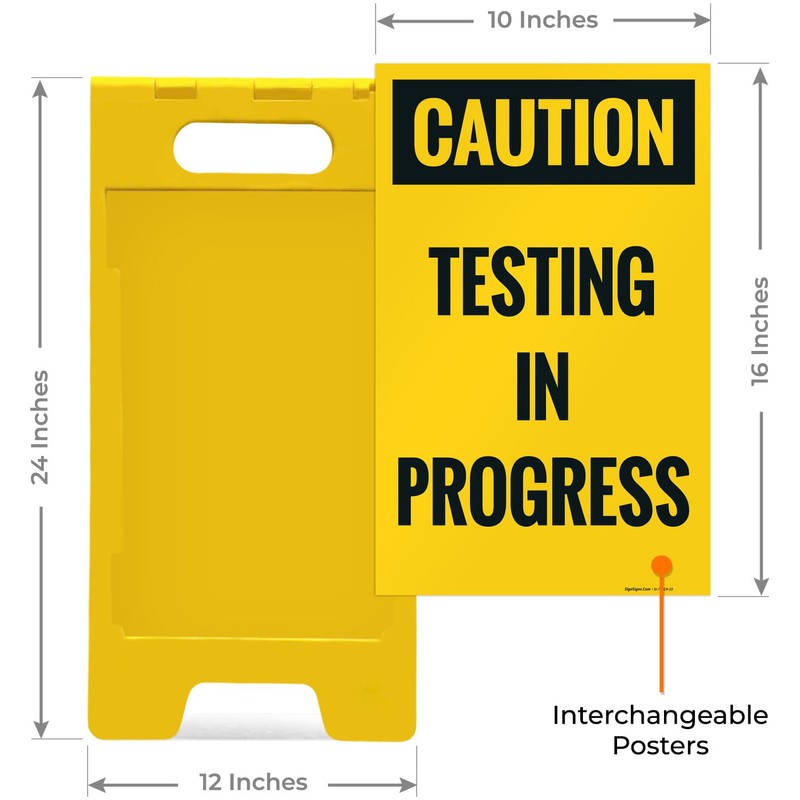 Caution Testing in Progress Sidewalk Sign Kit, 10x16 Inches, with A Frame Stand, Made in USA