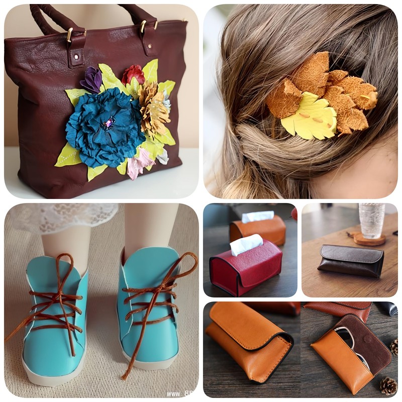 - 【DIY Project】Handbags, hair bows ,wallets ,cell phone case ,leather earrings, Keychain, clothing embroidery decals and many other kinds of DIY decorations, but also you can do some leather furniture seat Minor repair works. Eco-friendly material, can also be used in manual classes.