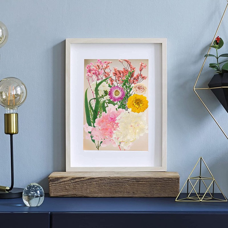 - Material: The frame is made of natural wood and mesh, and the flowers are real flowers that are naturally dried. The yarn is not very elastic, please not use strong pressure during the process of making paper.