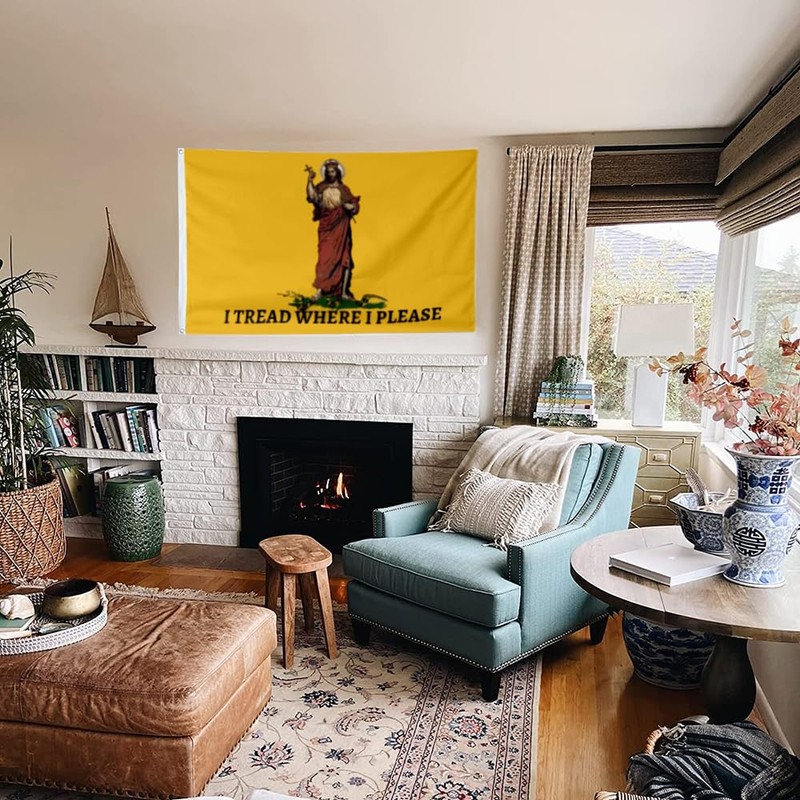 Cayyon I Tread where I Please Flag Christ Our King Flag Banner Outdoor Indoor Decoration Flag 3x5Feet Double Stitched Polyester with Brass Grommets