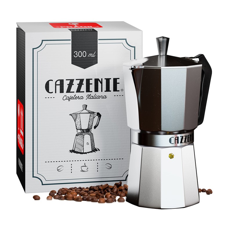 Cazzenie Cafetera italiana 300ml de Aluminio 1 Taza. Cafetera espresso para estufa con diseño clásico. Cafetera individual para preparar cafe o capuchino. Prensa italiana. Espresso maker