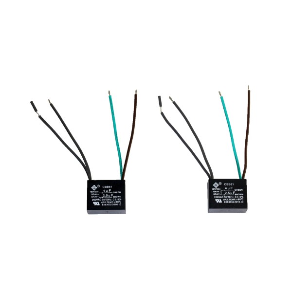 This is a CBB61 4uf+2.5uf 4 Wire capacitor ± 5%, 250V AC and 50/60Hz rating. The maximum operating temperature is +70°C. Before throwing away your favorite ceiling fan check the CBB61 ceiling fan capacitor first. It may be weak or burnt out. CBB61 capacitors control the start and stop mechanisms and fan speeds on many different types of ceiling fans motors using these types of capacitors.