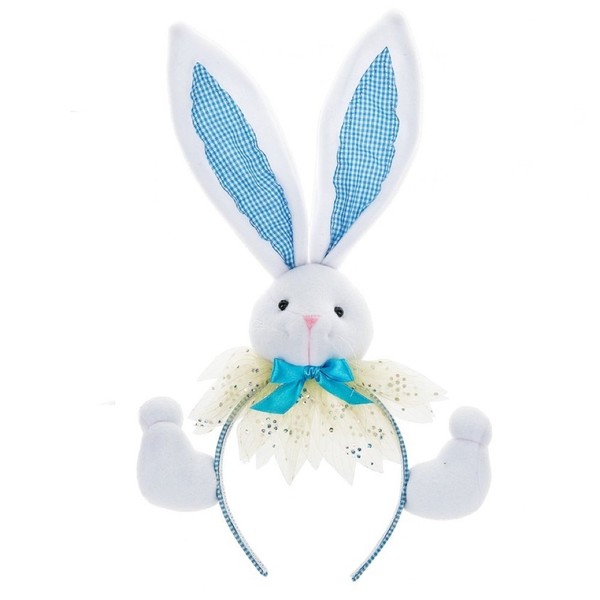 Size: 5.25L x 2.5W x 14.5H inches. - Plush Bunny Ears Headband. Posable Ears, One Size Fits Most. Compostion- Polyester. Midwest-CBK Home Decor Easter Decorations and Decor Collection.