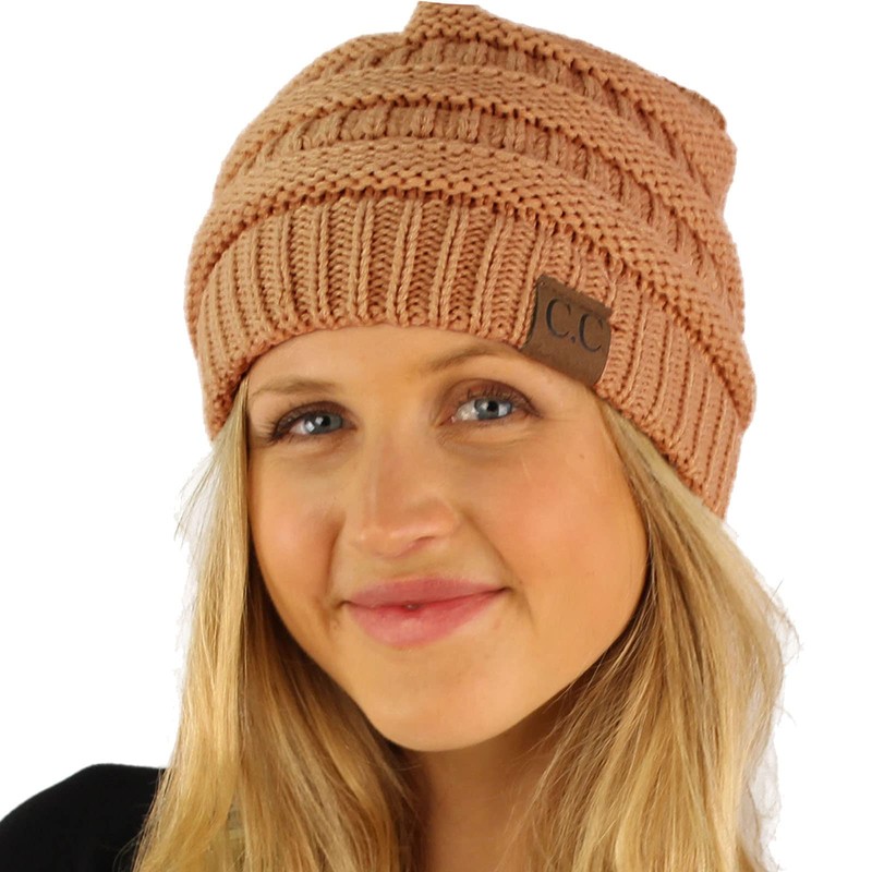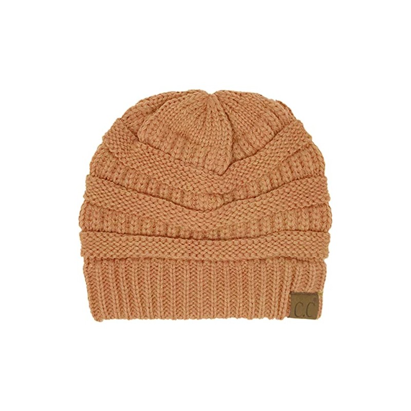 CC Classic Winter Fall Trendy Chunky Stretchy Cable Knit Beanie Hat, Solid Toast Almond, One Size