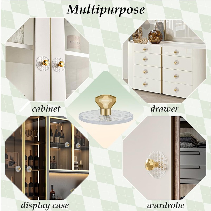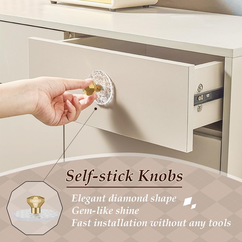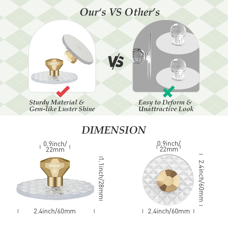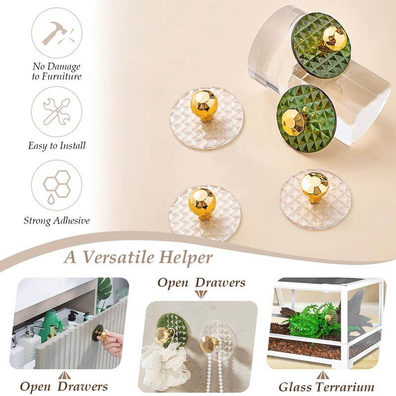 • 【Eye-catching Decor】: Their diamond shape and shining surface create an eye-catching decor element that's sure to impress. Transform your cabinet mirror doors, drawers, glass cases, terrarium tanks, and more with these beautiful cabinet jewelry pieces. The sturdy Acrylic & ABS material with strong adhesive that bonds firmly to smooth surfaces, providing a reliable and secure grip.
