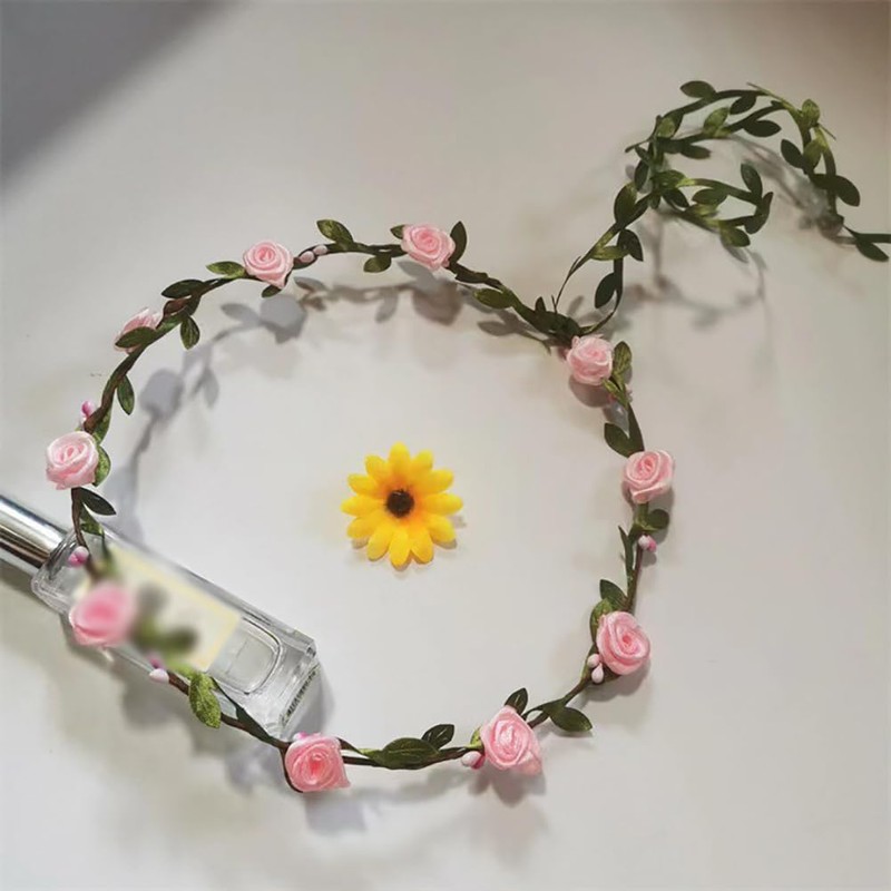ccHuDE 6 Pcs 20cm Floral Hair Wreaths Flower Girl Crowns Bridal Flower Hairbands Flower Garland Headbands Photo Prop Floral Headbands with Leaf Ribbon for Wedding