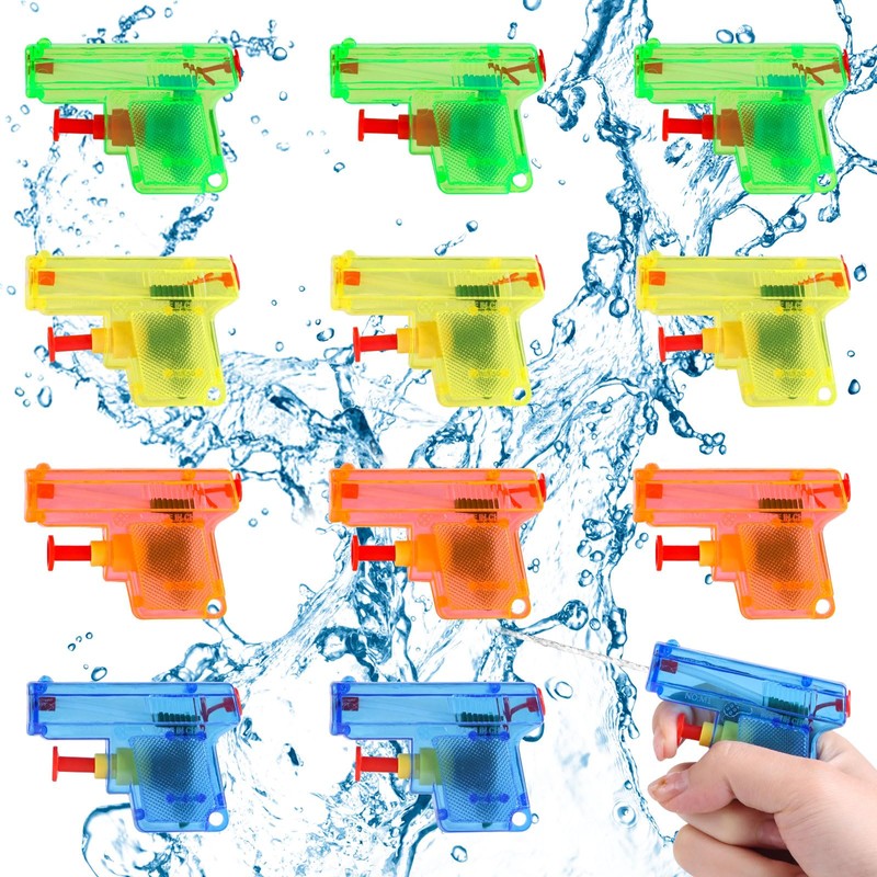 • Material: The mini water guns are made of durable, non-toxic ABS material that won't leak and is comfortable for little hands to grip. The colors are bright and beautiful and will not fade when exposed to the sun.