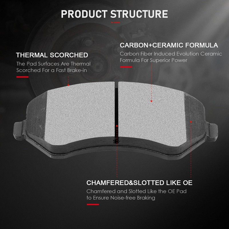 - RELIABLE QUALITY: The brake pad is made of premium quality carbon-fiber ceramic formula, to meet low noise performance of OE ceramic pads and provide excellent braking effect.