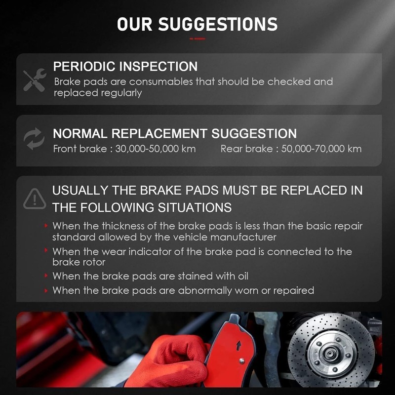 - LONGER SERVICE LIFE: Each brake pad surfaces are thermal scorched to shorten the break in time and ensure a more consistent service life of the brake pads.
