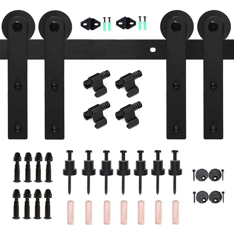 - 【Durable & Sturdy】: CCJH Sliding barn door hardware kit is made of heavy duty construction steel, Sliding smoothly; Maximum loading capability is 220lb per door; Fit for 1 1/5"-2" thickness door panel; The clearance between door panel and wall is about 5/8";track real length 68"/173cm