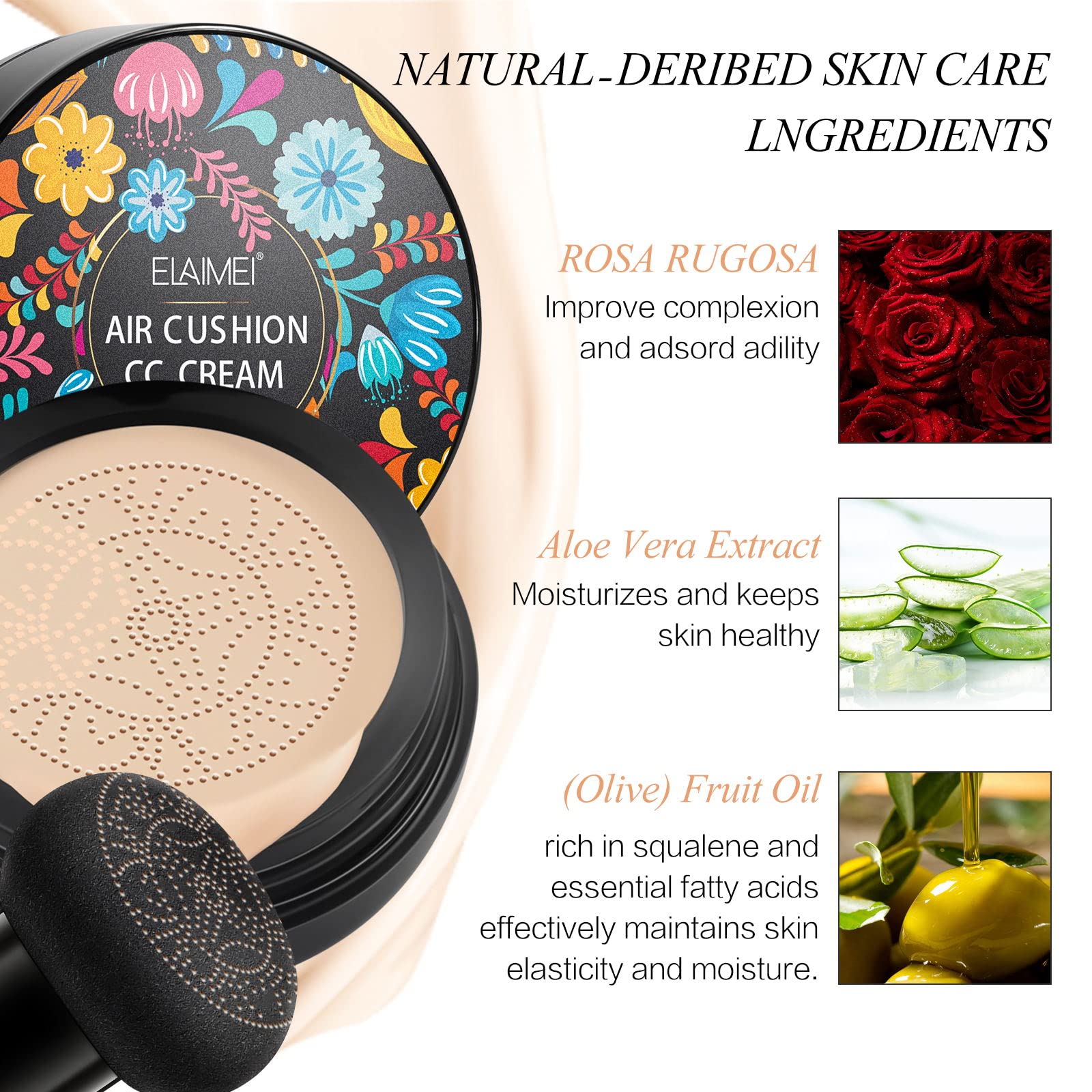 CCKULOOB Foundation CC Cream BB Cream Compact Foundation Mushroom Head Air Cushion Oil Control Moisturizing Even Skin Tone, Covering Imperfections Foundation Coverage (Natural)