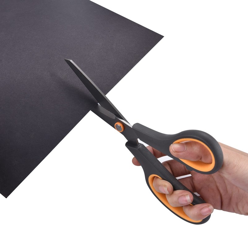 CCR Titanium Scissor 8-Inch,4-Pack Whether cutting paper, cardboard, fabric, or photos, CCR 8-inch scissors make a useful addition to any home or office. Titanium Different from spraying, plating titanium is . It can improves the corrosion resistance and hardness of blade, and resists the adhesive of tape and glue. 2Cr13 stainless steel The titanium blades provides three times the strength of classic stainless steel blades and they stay sharp and effective even after long use. Soft Comfort-Grip Handles The large loop handles fit any- size hand and work well for both left- and right-handed users.