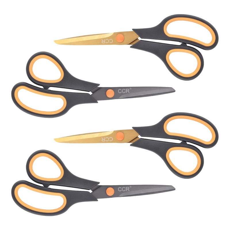 CCR Scissors 8 Inch Soft Comfort-Grip Handles Sharp Titanium Coating Blades, 4-Pack