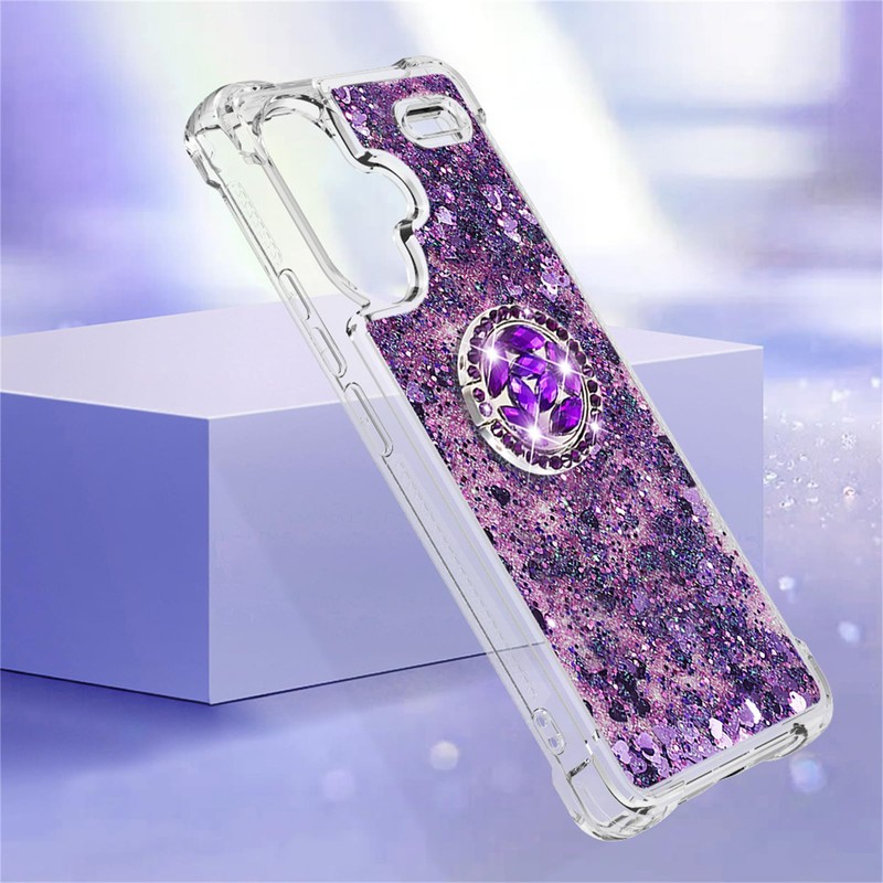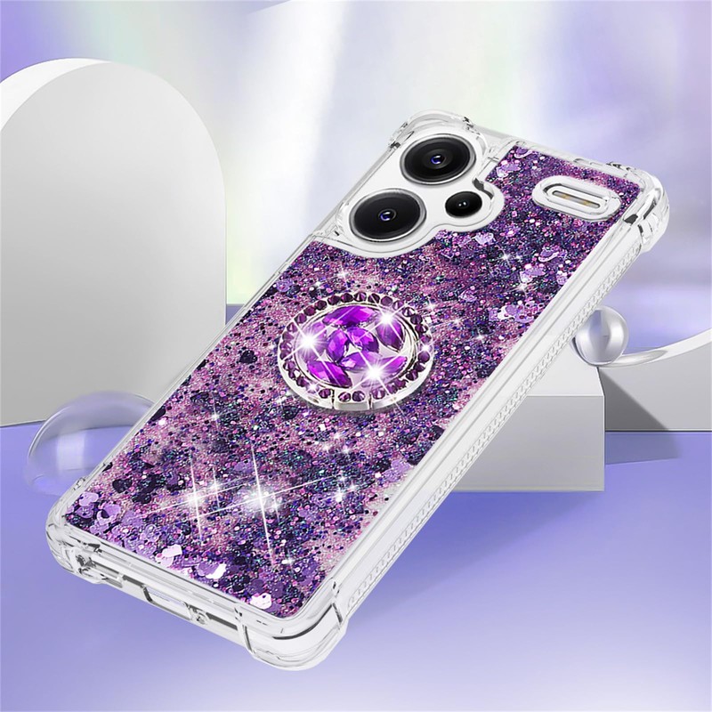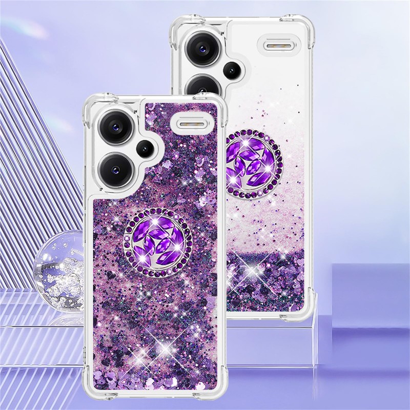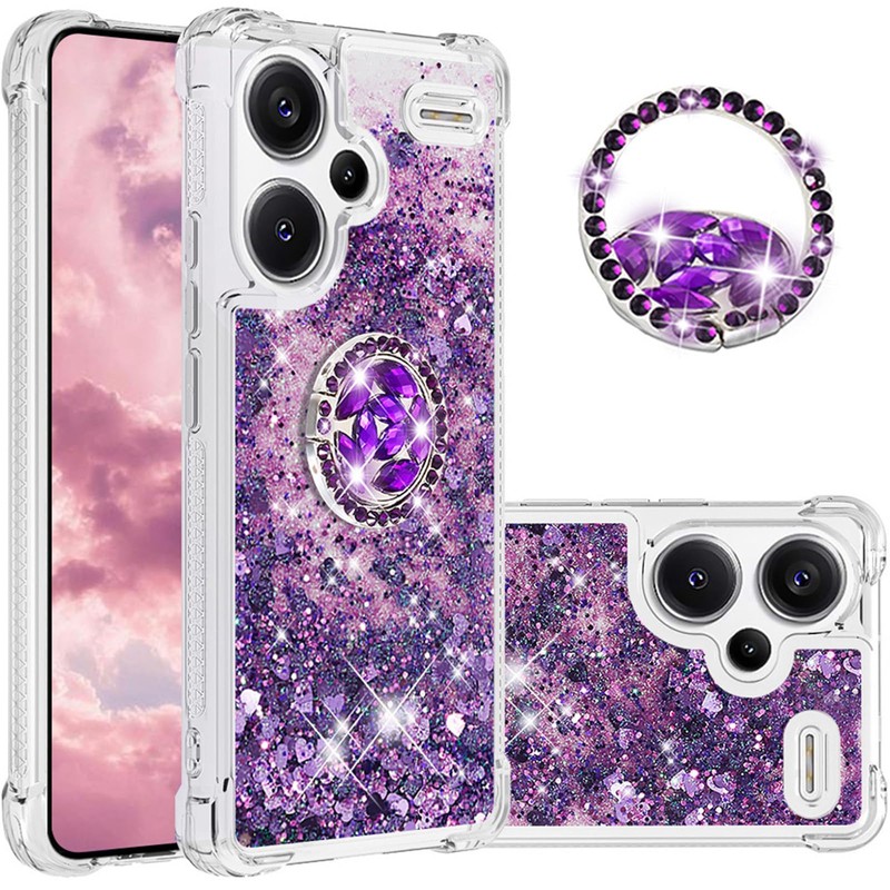 CCSmall Glitter Clear Sparkly Bling Case for Xiaomi Redmi Note 13 Pro Plus 5G, Flowing Liquid Quicksand Cover with Diamond Ring Holder Case for Redmi Note 13 Pro Plus 5G LSZ Purple