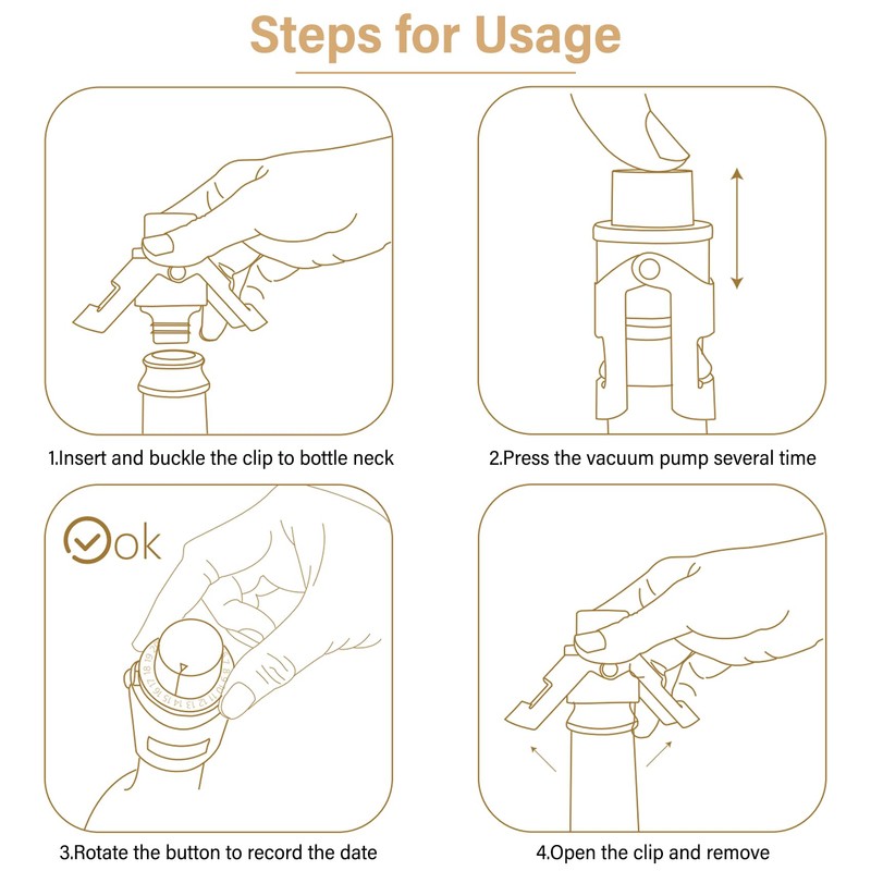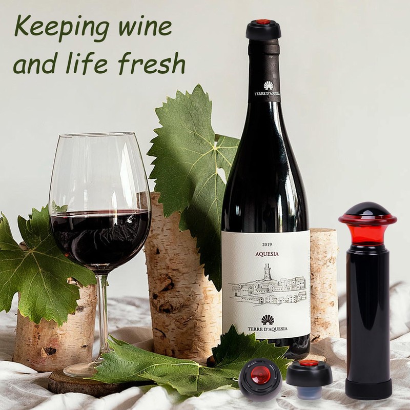 - 【Wine Saver Vacuum Pump Set】This set includes 1 Wine Saver Vacuum Pump, 3 Wine Stoppers, and 1 Champagne Stopper, providing everything you need to keep your wines fresh and flavorful.