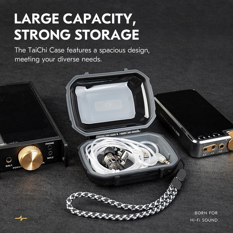 • Waterproof and Dustproof Case The TaiChi Portable Case is equipped with a sealed TPU design, effectively protecting against moisture and dust. Perfect for storing audiophile gadgets.Made of supreme quality,sturdy and long-lasting,anti-Shock, Weather Resistant Material.comes with a sealed design to prevent dust, water, and moisture. No more worries about moisture damage to your earphones.