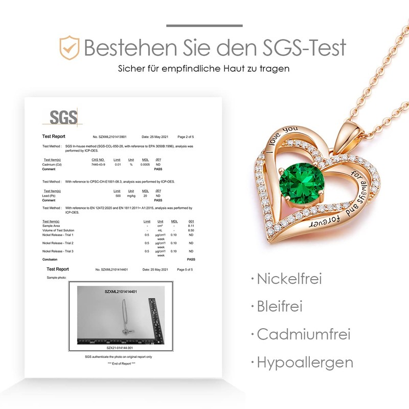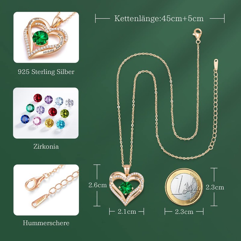 CDE Necklace 925 Sterling Silver, Forever, Love, Heart, Rose Gold Plating, Birthstone Pendant, Necklaces for Women, Jewellery Gift with 5A Cubic Zirconia, Sterling Silver