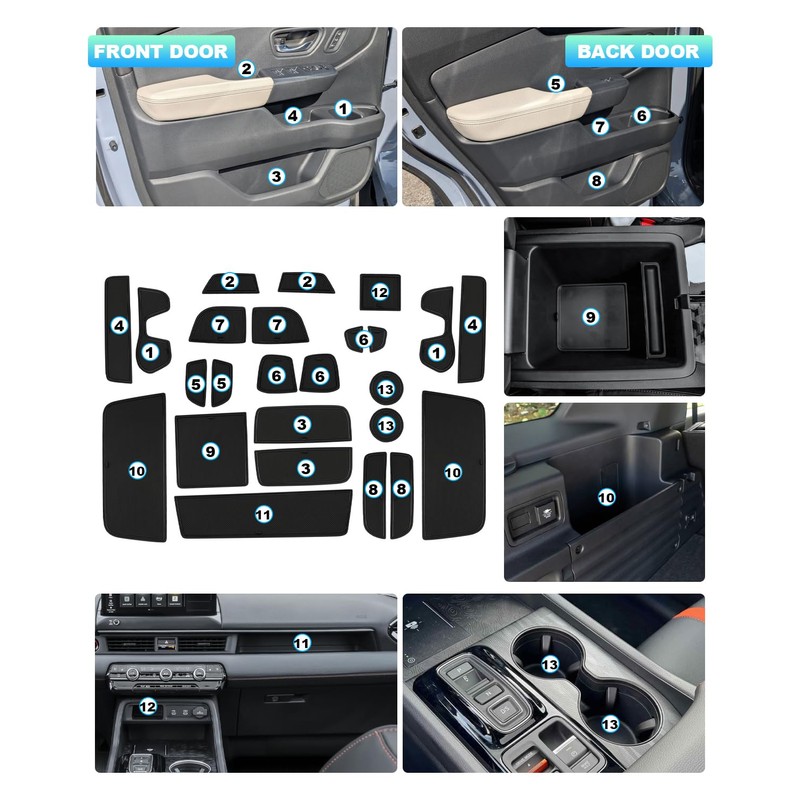 CDEFG 25PCS for 2026 Honda Passport Door Slot Mats Cup Holder Mats 2026 Honda Passport Accessories Console Insert Pocket Rubber Set Console Coaster Liner Pads