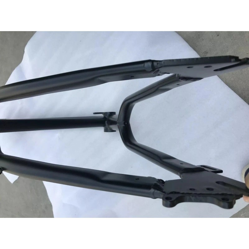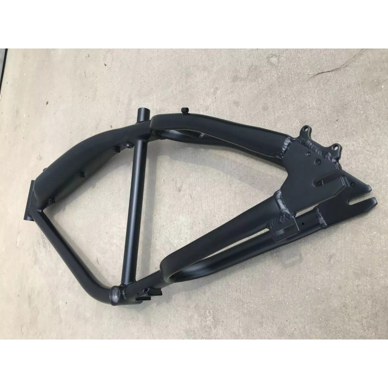 Rear Disc brake bracket.Frame made especially heavy duty for gas engine applications Available with 135mm rear frame width for either single speed or multi-speed bikes. Rear Disc brake bracket and front mount pedestal works well with 8mm gas motor front mount bolts . | Bottom bracket 2" diameter.0.5mm thickness front mount pedestal. CDHpower Reinforced front mount pedestal. 38mm diameter downtube 70 degrees angle V frame. | Head tube: 150mm.Requirement on headset size:1 1/8" | Sample of gas bike w/2.4L gas frame.This is how it looks like when you finish building the complete bike. Item Weight : 10.15 pounds |