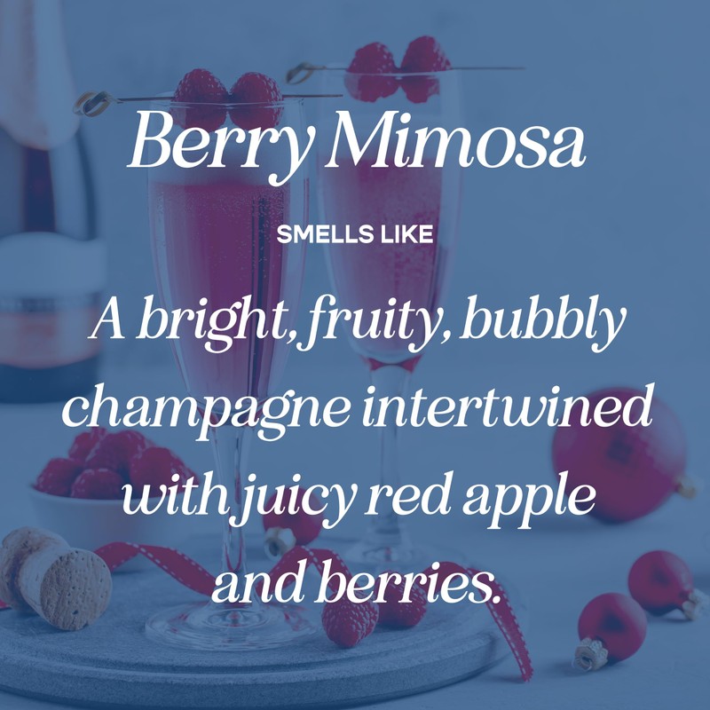 - OUR SCENTS: Enjoy a great blend of indulgence with our duo package; Experience the bright, fruity notes of Berry Mimosa intertwined with the invigorating aroma of Champagne. Transport yourself with every breath to a world of luxury and refinement.