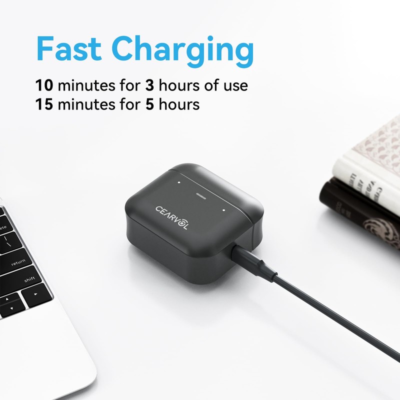 - Rapid Charging Capability: Power up quickly! Get 3 hours of hearing aid use from just 10 minutes of charging, or 5 hours from 15 minutes. The case itself fully recharges in only 2 hours via the included USB Type-C cable