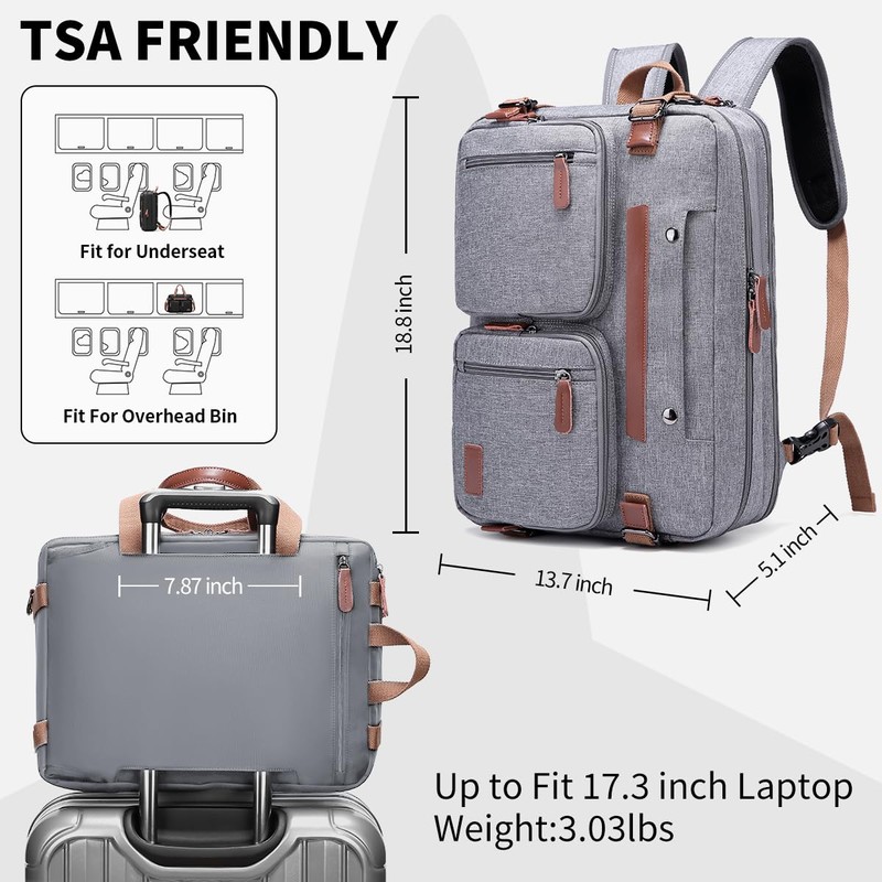 • [3-in-1 Multifunctional Design for Laptop Bag] Seamlessly switch between different styles to meet your needs. This versatile backpack can be used as a laptop backpack, messenger bag, business backpack, briefcase, laptop bag, work bag, crossbody bag, or carry on backpack. Perfect for work, commuting, university and airplane travel. Please note, THIS ITEM IS NOT INTENDED FOR USE BY CHILDREN 12 AND UNDER.