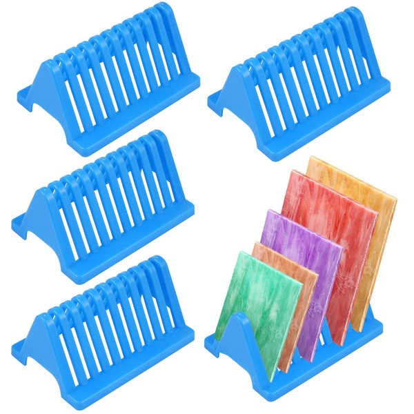 CebraBounze Stained Glass Sheet Storage Rack, Glass Panel Organizer, 10 Slots (Blue, 4Pack)