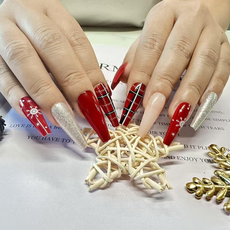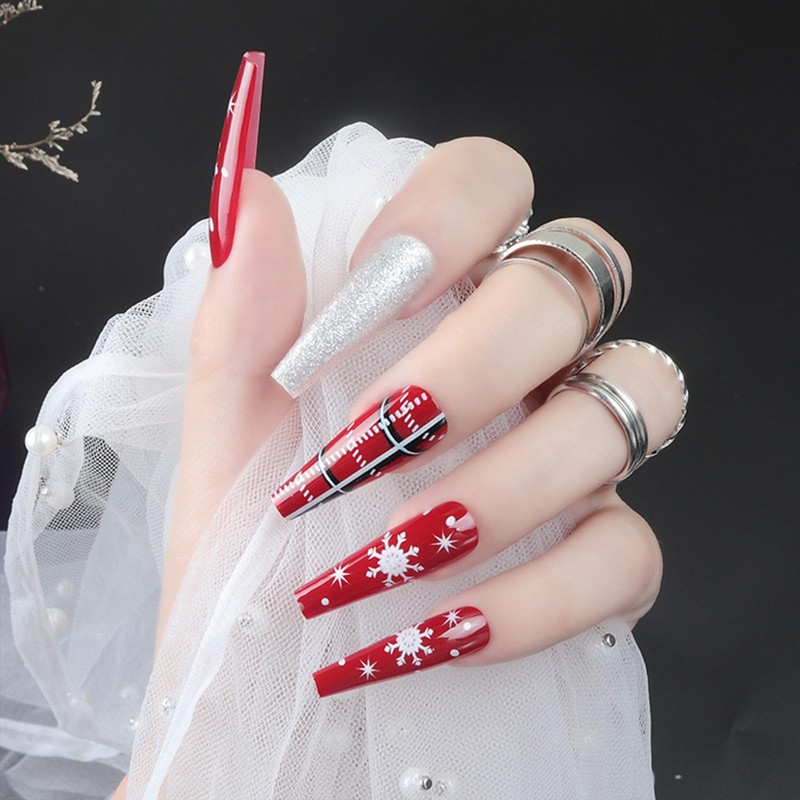 - 【Package Included】Customizing your nails made easy. There are 24 pieces 12 sizes to choose from for a perfect fit. Our Christmas fake nails include an organizer, 24 jelly gel stickers, a nail file, sticks and prep pads for a complete manicure solution.