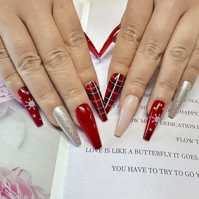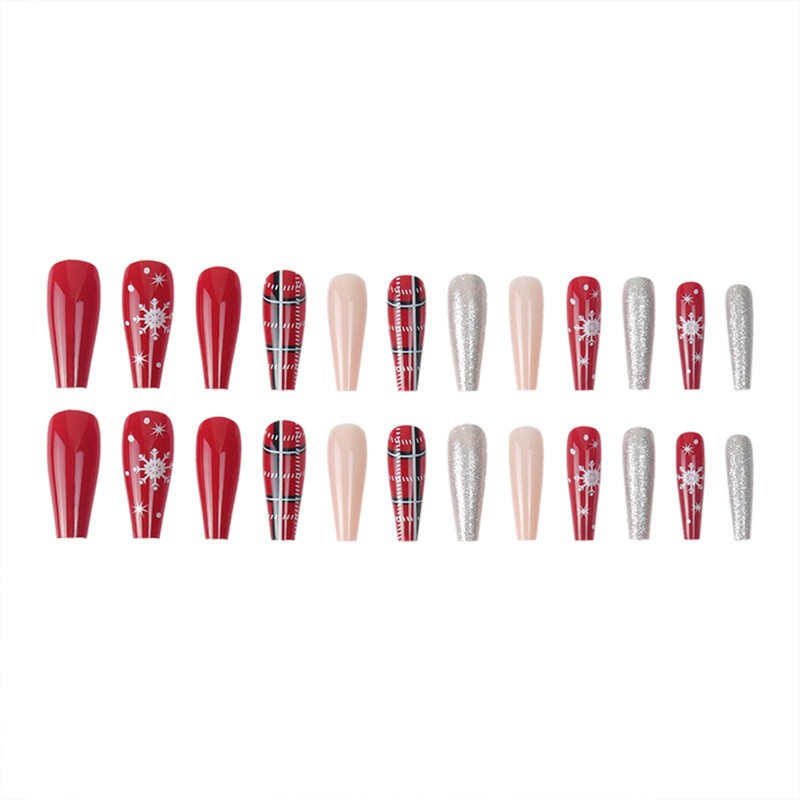 CECOBAG Red Press On Nails, Christmas Rectangle Fake Nails, Reusable Artificial Nails For Women Glue On Nails 24 Pcs
