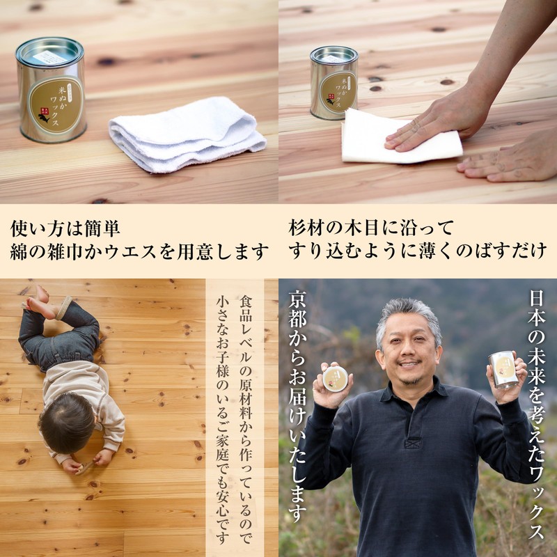 - Rice bran wax is a wax that has been adjusted to optimize cedar wood. Can also be used for all coniferous trees. (Cedar, cypress, pine, pine, red cedar, etc.). This wax is ideal for wood with its soft properties
