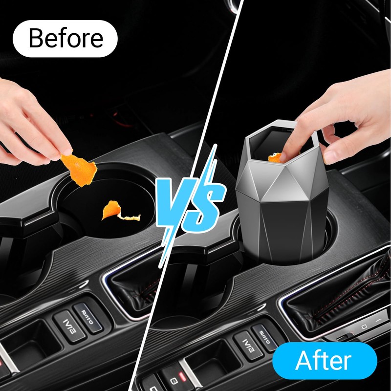 - 【Exquisite Design】 Made from durable ABS material, this car garbage bin features a unique diamond design and matte finish, adding a touch of elegance to your vehicle. Its compact size fits perfectly in the vehicle's cup holders, back seat pockets, centre consoles, or door water bottle holders.