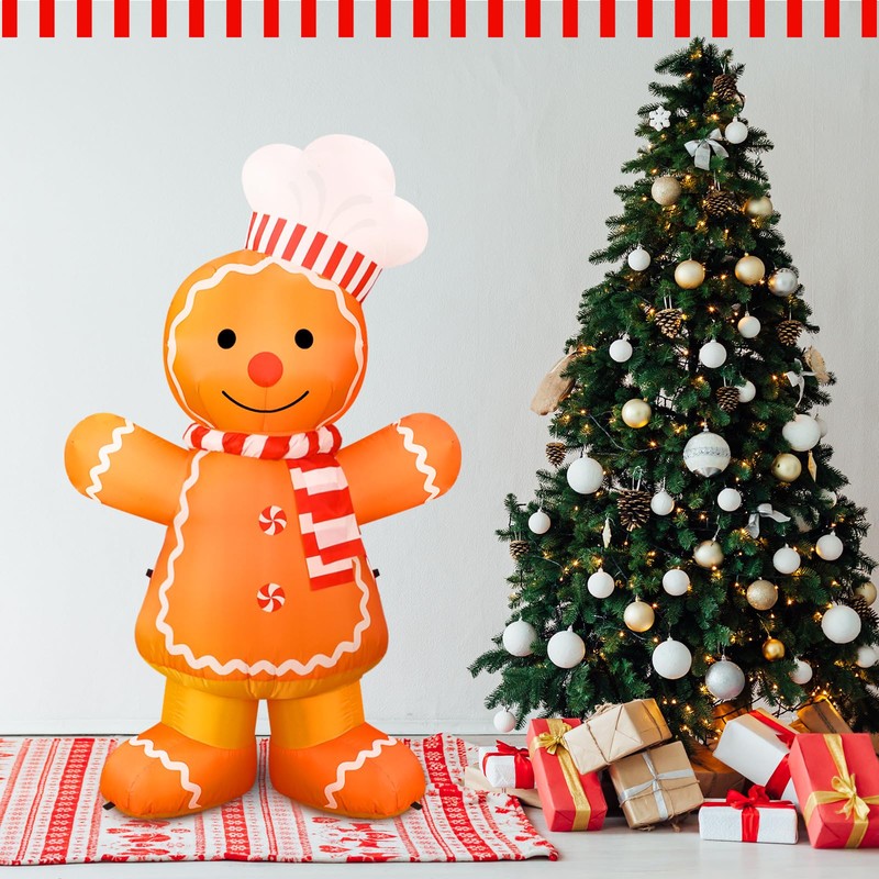 - Chef Gingerbread Design: the gingerbread couple inflatable features red scarves, bows, and chef hats, adding a playful holiday touch to your outdoor space; Whether placed in your yard, lawn, or porch, it brings joy and charm as part of your Christmas front door decorations or Xmas decorations outdoor