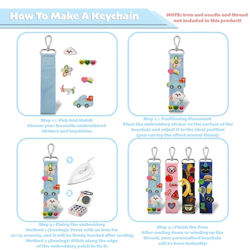 - Easy to use: You can quickly secure the patches by ironing or sewing, allowing you to combine multiple patterns together; enjoy a fun and relaxing hands-on experience, even beginners can easily create personalised keychain jewellery or decorative pendants