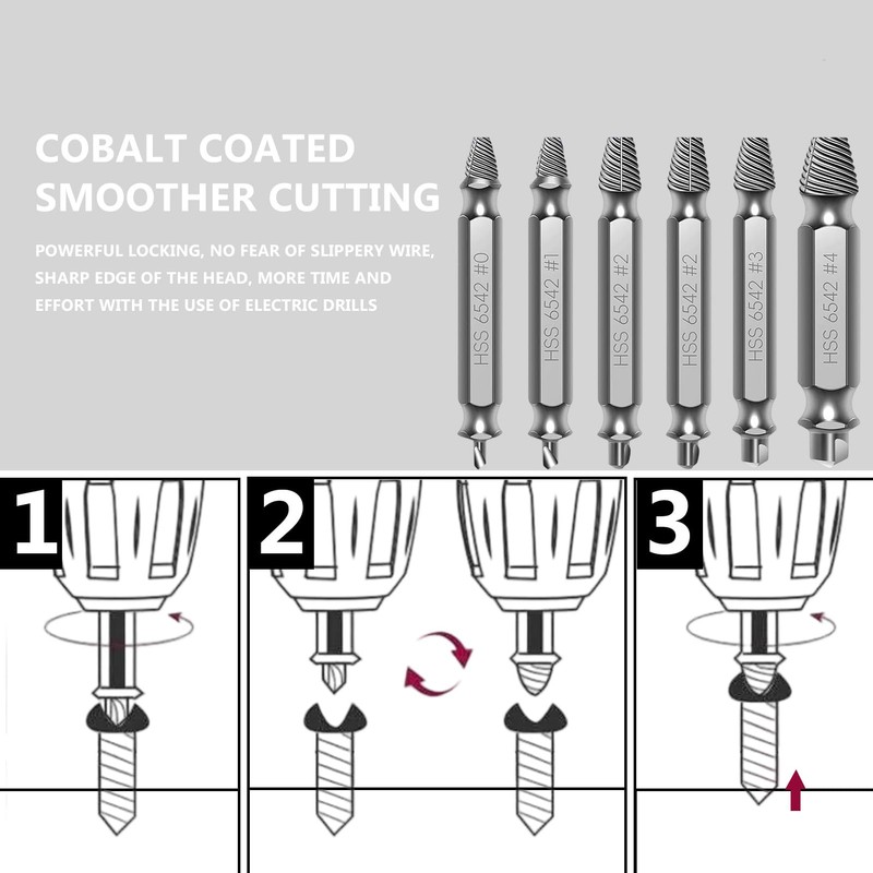 - Widely used: Unscrew damaged screws suitable for repair work in the home, on the car and on machines. Whether it is a screw on a small electronic precision device or large mechanical equipment, you will find a suitable extractor. It is also equipped with three carbide spiral drills that can be used to drill holes in metal, wood, plastic, etc. to meet the requirements of different maintenance scenarios.