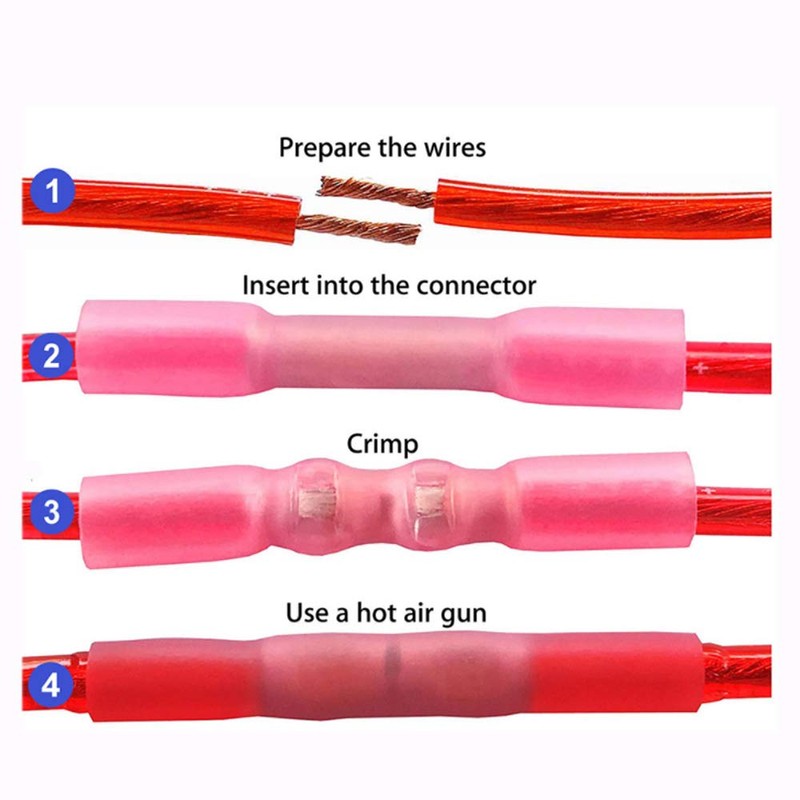 CEEYSEE 100Pcs Heat Shrink Butt Connectors 22-16 AWG Red Insulated Waterproof Marine Automotive Wire Crimp Terminal(RTH