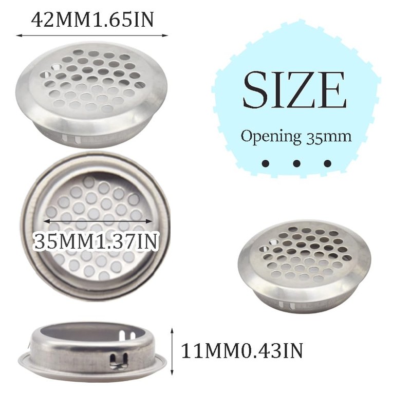 CEEYSEE Pack of 30 Stainless Steel Ventilation Grille 35 mm Round Ventilation Opening Ventilation Ventilation Exhaust Grille Small Ventilation Hole for Cabinets Wardrobe (PQK/35 mm)