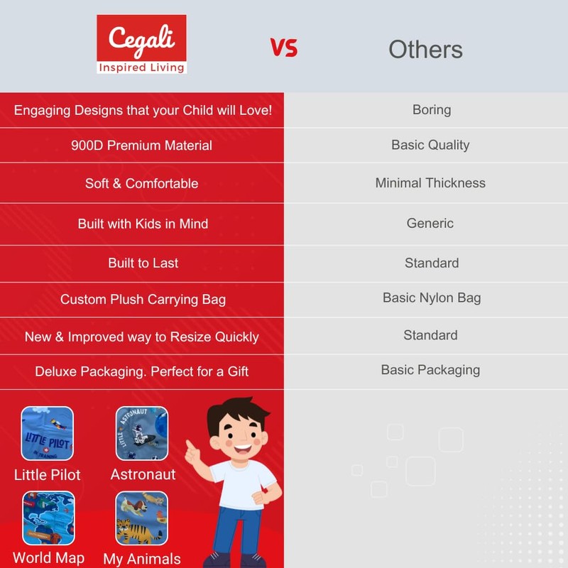 - PEACE OF MIND: Parents can relax, knowing that their little ones are safely contained within their own space, protected by the sturdy construction and adjustable straps of the Cegali Seat Extender. Say goodbye to worries about restless children or the need to constantly monitor their movements, and embrace a peaceful flying experience with Cegali.