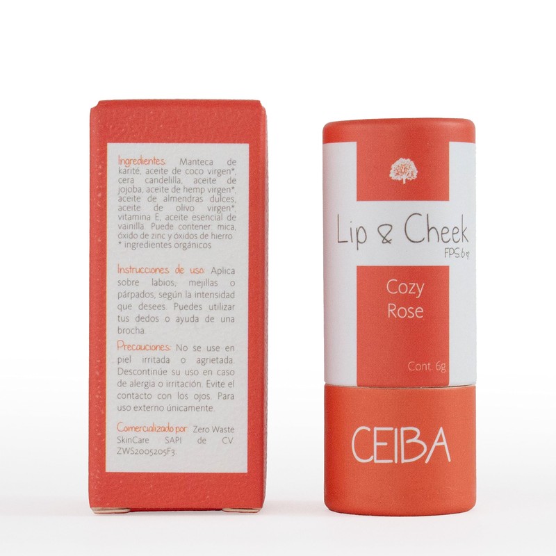Es un bálsamo humectante de textura suave con un toque de color. ¡El más vendido! Tiene un color muy sutil, perfecto para un look saludable y natural, puedes aplicar más capas si deseas un color más intenso. Su fórmula es humectante y de fácil difuminado, dejando un toque de color en labios, mejillas o párpados. Simplifica tu rutina con nuestros bálsamos multiusos. Es un tono dusty-rose con toques de color salmón, le sienta bien a la mayoría de los tonos de piel. Acabado satinado, cobertura construible. Aroma ligeramente a vainilla. Todos los productos de Ceiba Essentials son libres de parabenos, BHT, ftalatos, aceites minerales, ingredientes de origen animal y fragancias sintéticas. Nuestra promesa: Vegano, natural, sin pruebas en animales, seguro para ti y para nuestro planeta. Presentación: Envase de cartón biodegradable tipo push-out con 6 g.