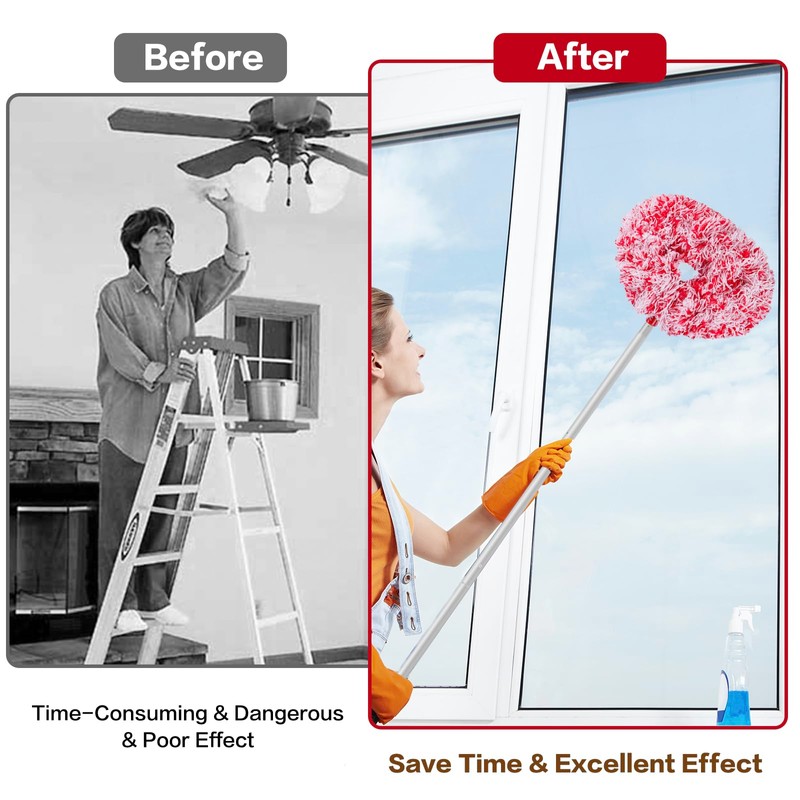 - Extendable Length: With its retractable rod, the ceiling fan cleaner allows for adjustable lengths from approximately 13 to 49.7 inch, making it easy to clean ceiling fans without the need for chairs or ladders.