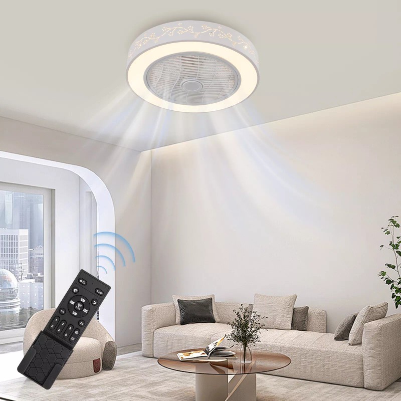 Ceiling Fan Light Acrylic 3-Gears Enclosed Dimmable LED Chandelier+Con