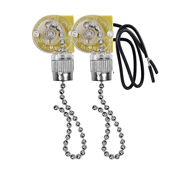 • Zing Ear ZE-109 Two-wire pull chain switch, activates canopy lamps by gently tugging the beaded chain, compatible with most ceiling fans or fan lights.
