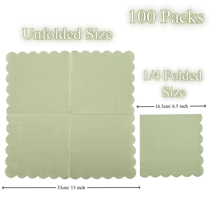 - Praktische Vorteilspackung: Holen Sie sich 100 hochwertige salbeigrün Servietten in einer Packung – genug für mehrere Veranstaltungen oder große Versammlungen.